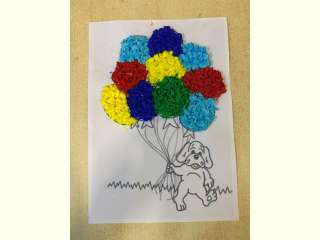 Дети учились делать разноцветные шарики интересным способом. Отрывали кусочки гофрированной бумаги, окатывали из них шарики, макали в клей и приклеивали на рисунок.