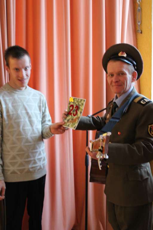 Наш творческий коллектив поздравил наших мужчин праздничным концертом с Днем защитника Отечества. На протяжении всего концерта зрители тепло встречали артистов аплодисментами и громкими овациями. Мероприятие завершилось поздравлением коллектива с наступающим праздником и были вручены подарки, сделанные руками воспитанников.