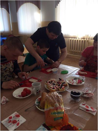Участие в проекте Эстафета возможностей продолжается. Воспитанники Большетроицкого центра приняли участие в кулинарном мастер классе "Забавные бутерброды".