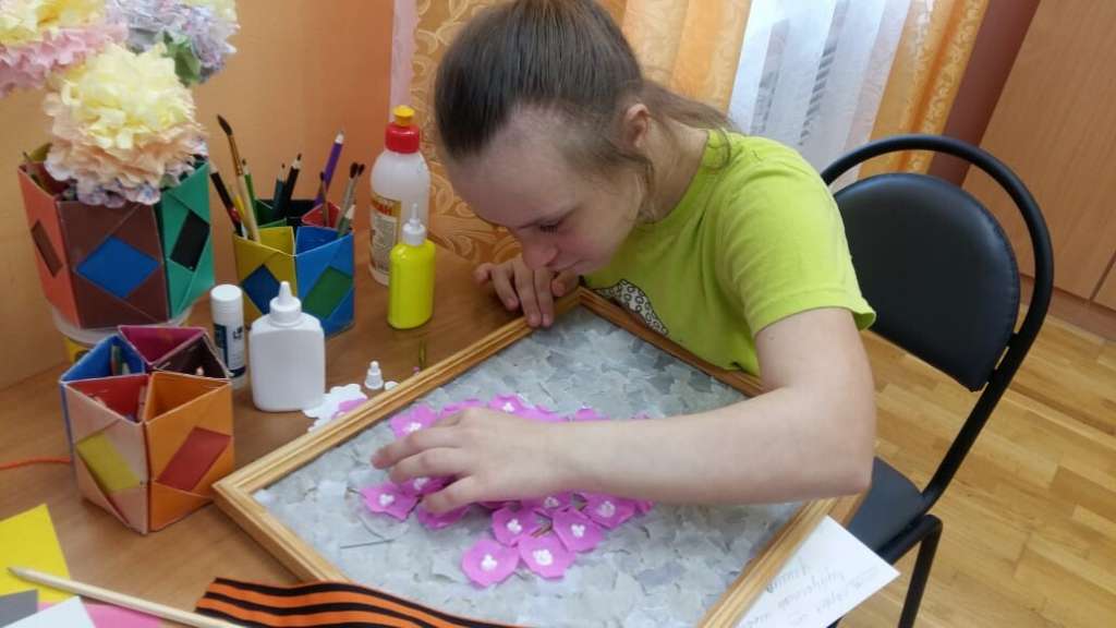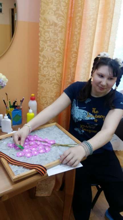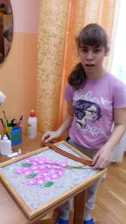 Несмотря на сложившуюся ситуацию с пандемией, когда огромное количество людей во всём мире живут и работают в условиях режима самоизоляции, группа девочек со вместно с воспитателями Шатура Е.В. и Морозовой Е.Н. принимая участие в муниципальном фестивале творчества людей с ОВЗ "Вальс Победы!" в номинации декоротивно-прикладное творчество.