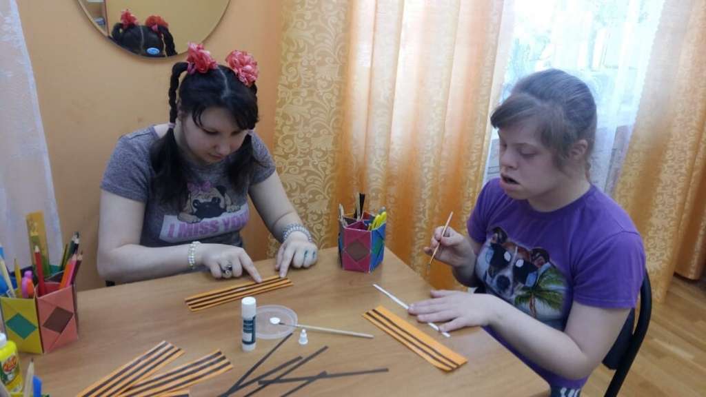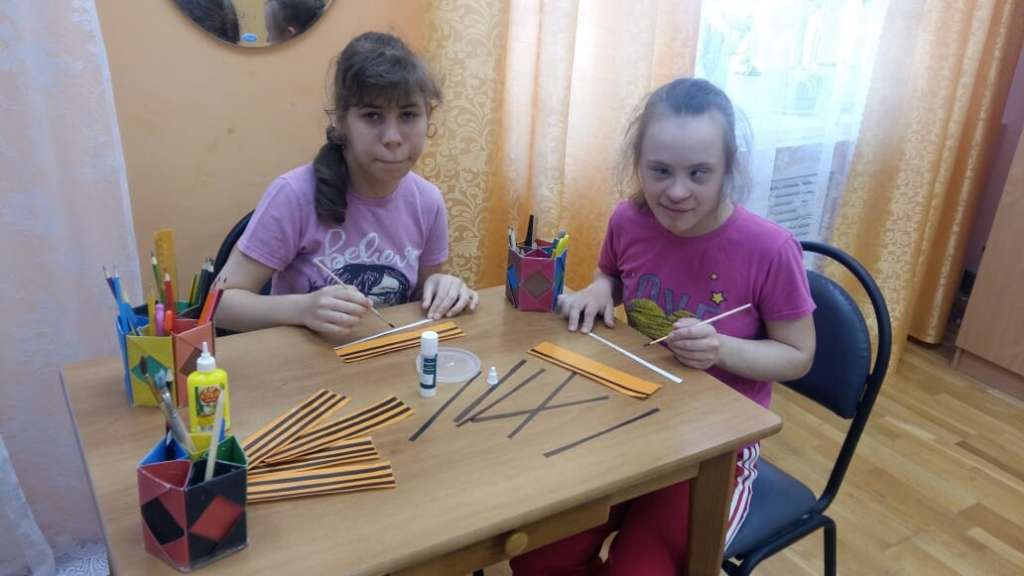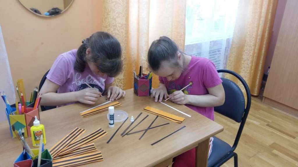 В предверии праздника Дня Победы, воспитатели Шатура Е.В. и Морозова Е.Н. с девчонками своей группы создали символ праздника - Дня Победы георгиевскую ленточку. Этот символ - выражение нашего уважения к ветеранам, дань памяти павшим на поле боя, благодарность людям, отдавшим всё для фронта.