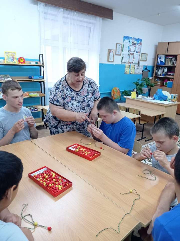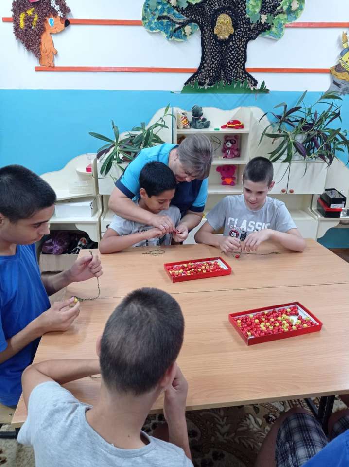 Воспитателями Чернышовой Е.В. и Салбановой З.С. был проведен творческий мастер - класс "Хвалебные - бусы", социо-игравая технология. Цель: с помощью игры развивать общение со сверстниками. Дети по очереди нанизывая бусины на нитку называют хорошие качества человека.