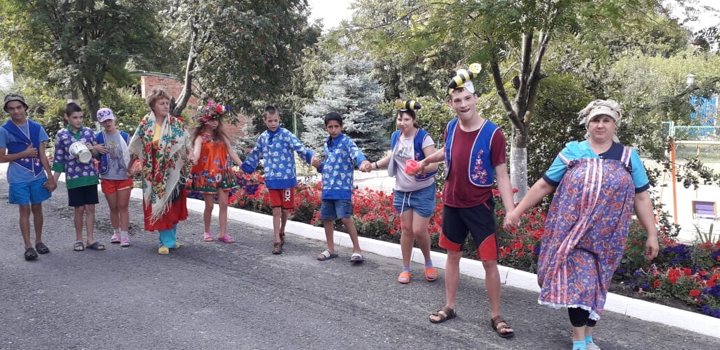 Наши ребята с воспитателями Морозова Е.Н., Салбанова З.С. и Чернышова Е.В. следуя народным традициям, славили вкусный и полезный сладкий мёд.