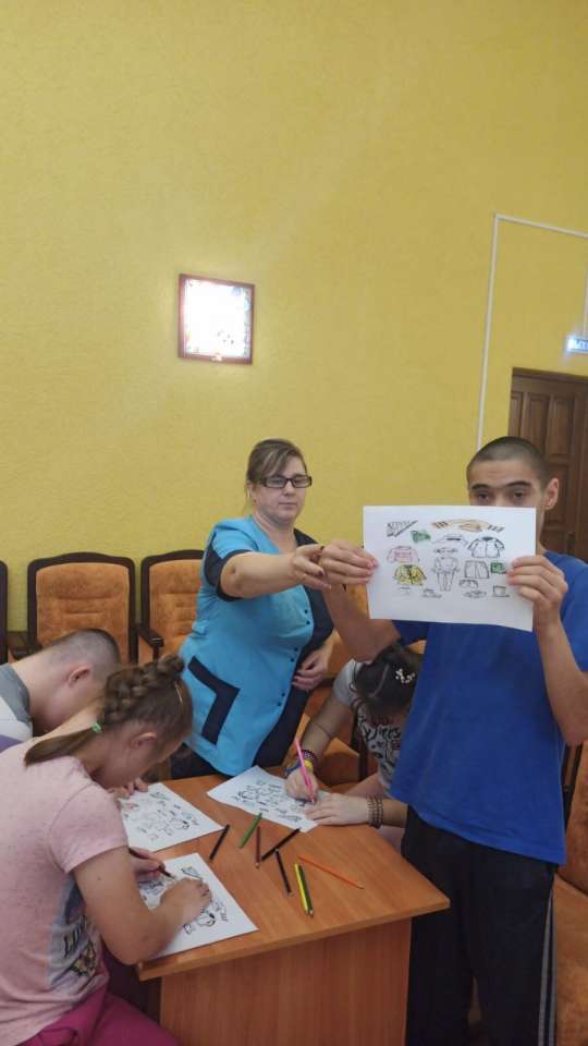 Е.В. Чернышова провела игру "Найди и раскрась" , где ребята с удовольствием раскрасили осеннюю одежду.