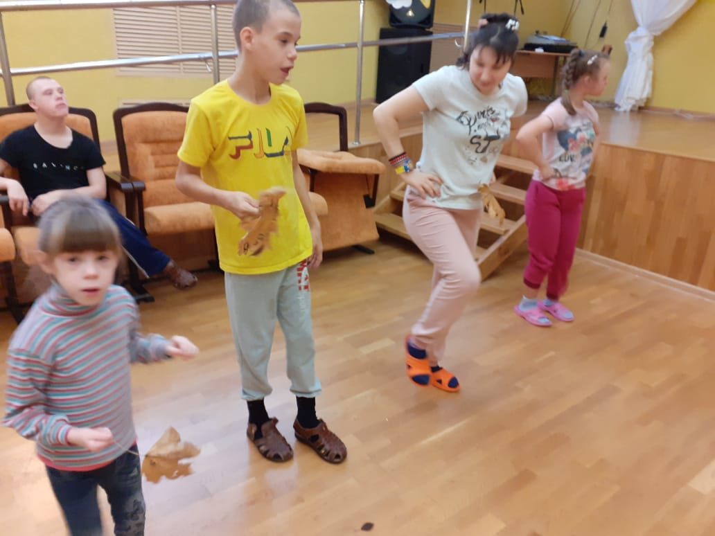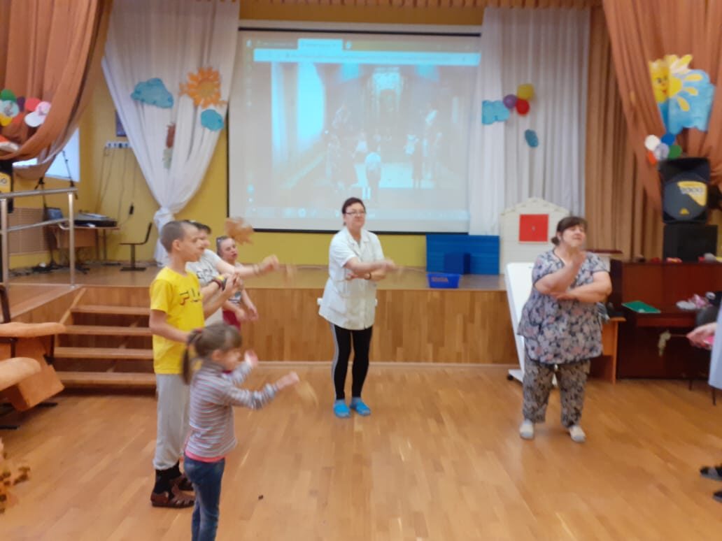 На физкультминутке дети танцевали флешмоб с осенними листьями.