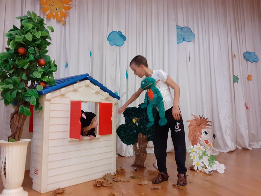 Ноябрь - самый печальный и унылый месяц осени. Природа готовиться к долгому зимнемусну. В субботний день воспитатели Шатура Е.В., Салбанова З.С. и Чернышова Е.В. решили разогнать скуку, унынье и создать положительное настроение воспитанникам и себе, через замечательную, добрую и поучительную сказку "Теремок".