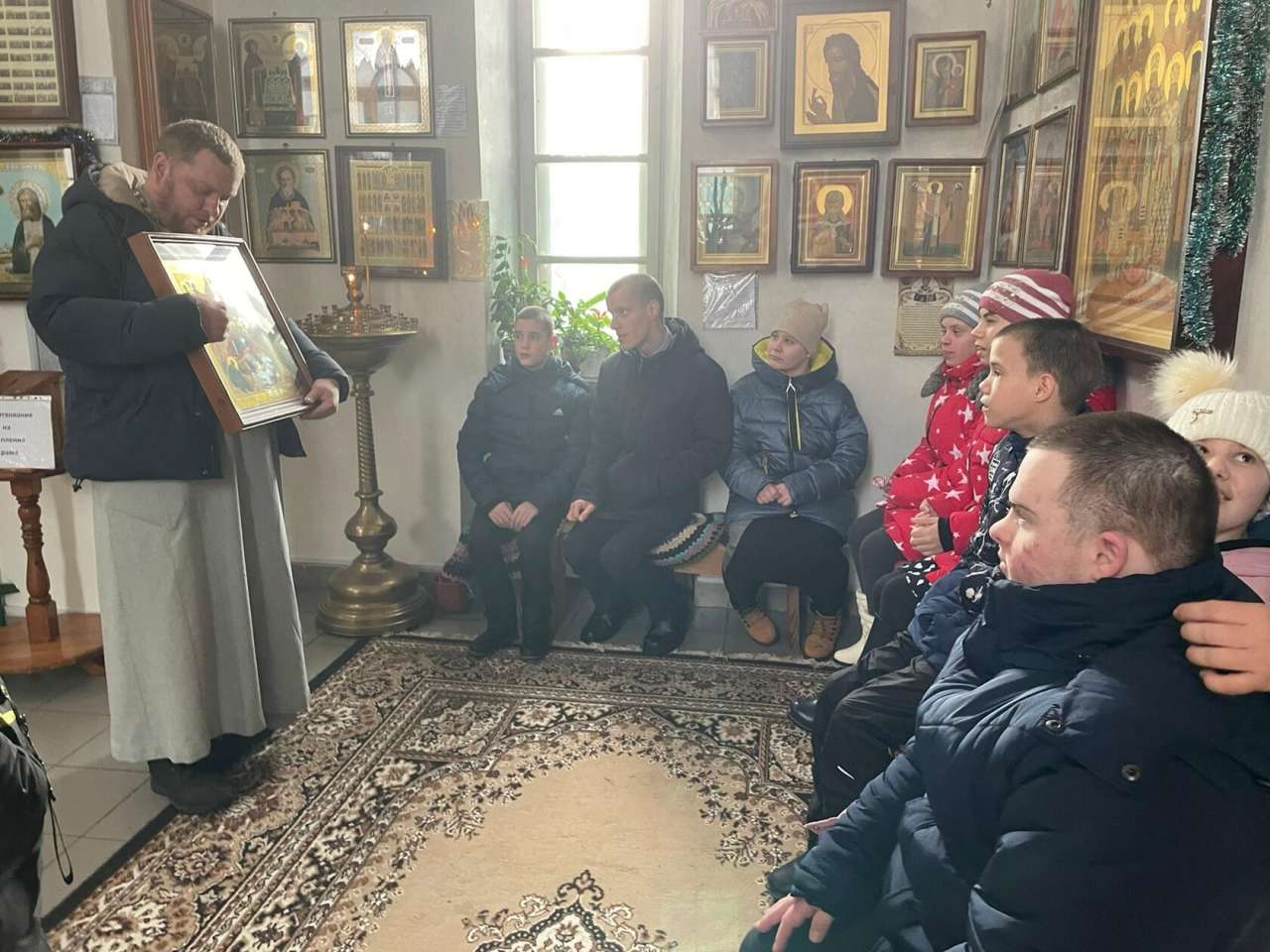 Старшим воспитателем Морозовой Е.В. и педагогом дополнительного образования Ауловой И.В. была организована выездная экскурсия в церковь для воспитанников Большетроицкого центра. К воспитанникам Центра с приветственным словом и поздравлениями со светлыми днями Рождества Христова обратился настоятель храма отец Алексей, провел обзорную экскурсию по церкви. Проникшись рассказом отца Алексея, дети с трепетом и благоговением прикладывались к иконе Рождества Христова. На память о посещении храма гостям были вручены иконки Святителя Николая.