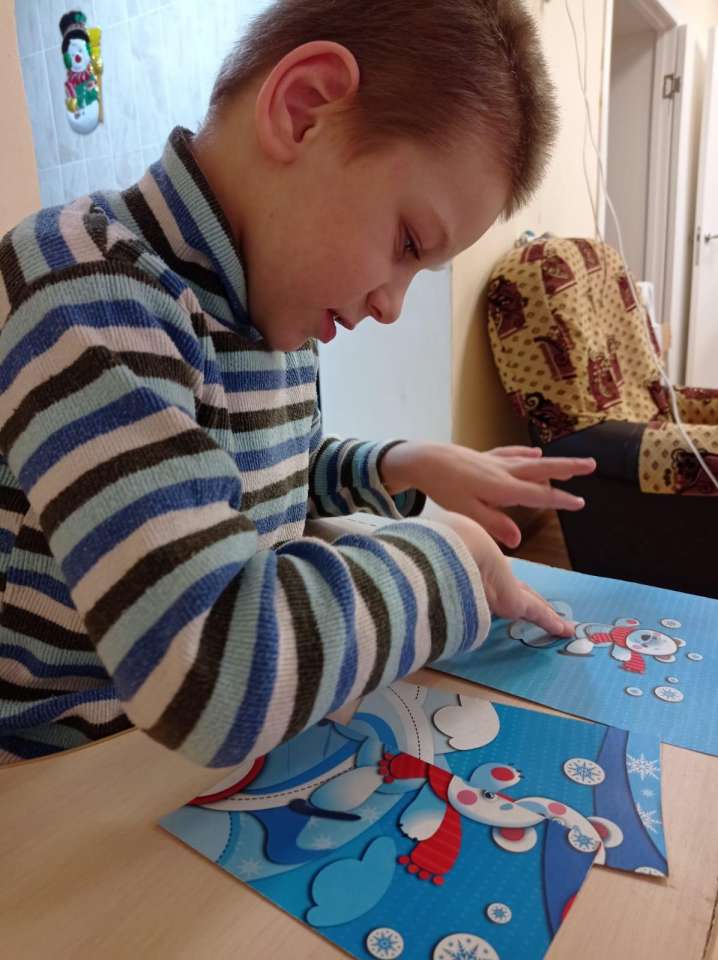 Цель: Формирование определенных знаний о зиме. Коррекция зрительного слухового восприятия, памяти, мелкой моторики рук во время собирания пазлов. Воспитание умения слушать, реагировать на просьбы воспитателя.