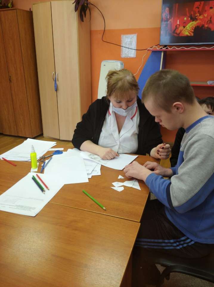 Выполнение домашнего задания с получателями социальных услуг . Тема: "Собери картинку". Практические упражнения на складывание разрезанных картинок из двух и более частей. Цель: развитие зрительного восприятия.