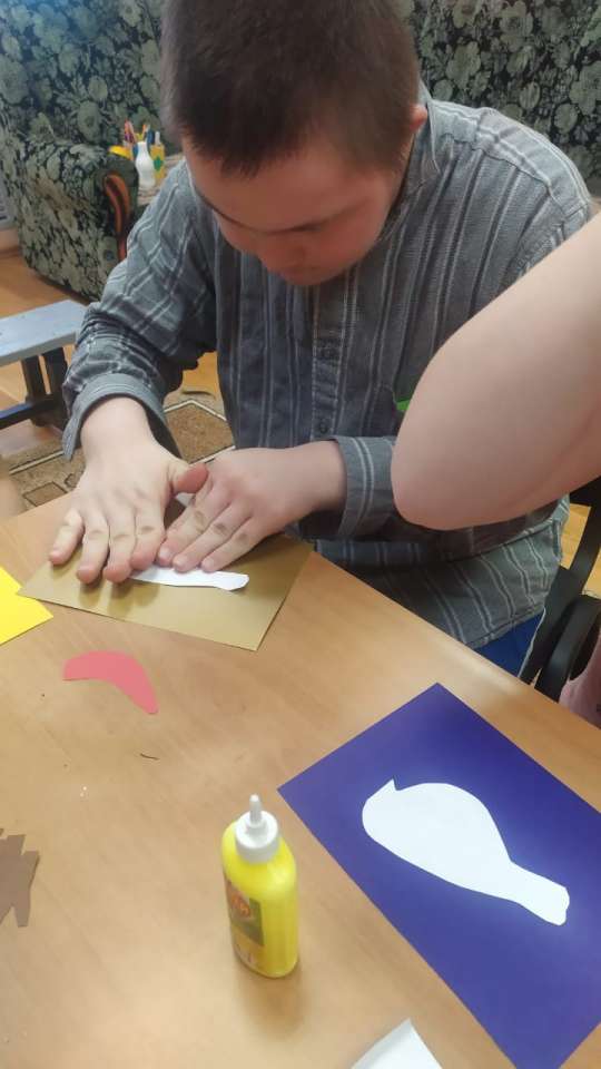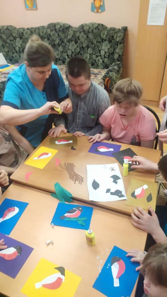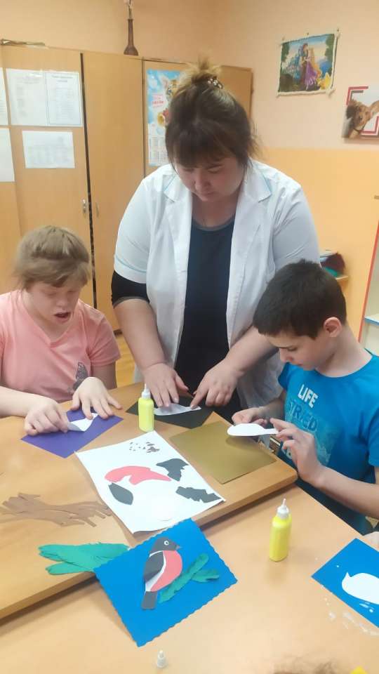 Цель: изготовление аппликации «Снегирь». Задачи: Развивать мелкую моторику рук и аккуратность при работе с клеем. Воспитывать желание создавать изображение птицы.