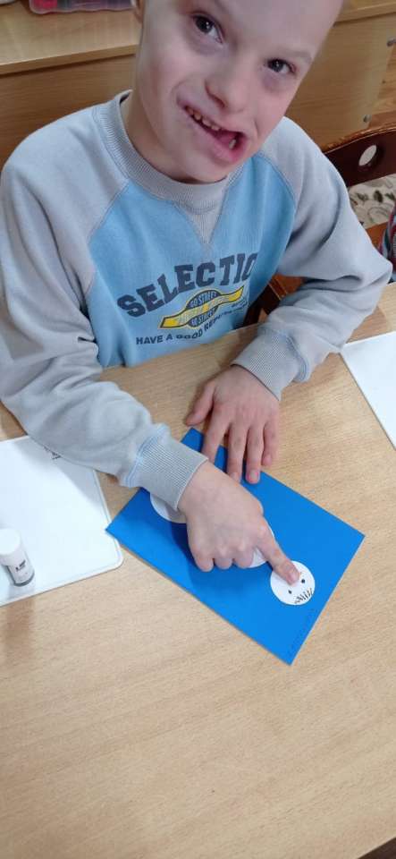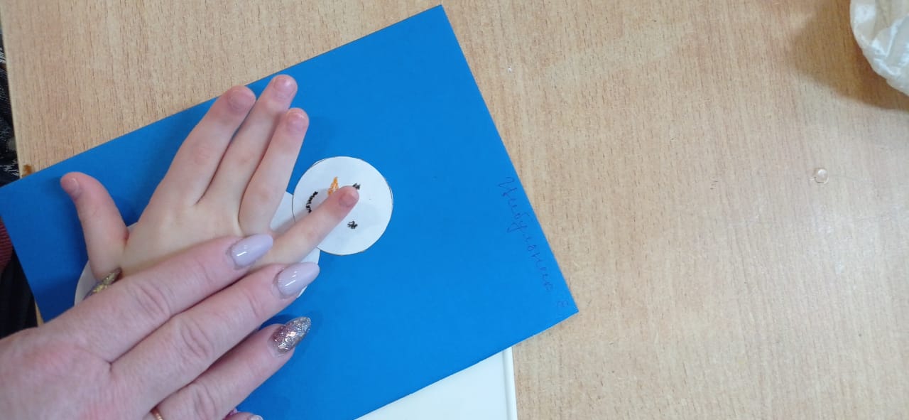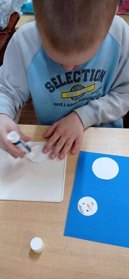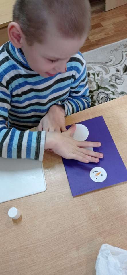 В отделение Милосердия, в группе манеж было проведено занятие на тему Аппликация "Снеговик". Некоторым детям достаточно было показа и частичной помощи, с остальными детьми воспитатель Наумова С.В. использовала метод «рука в руке».