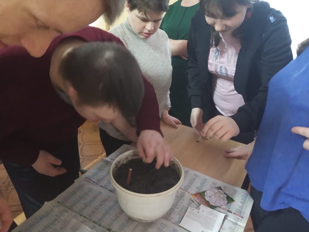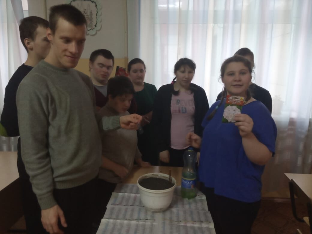 В отделении Молодой инвалид инструктором по труду Арзумановой Г.И. было проведено занятие «Посадили мы цветок».