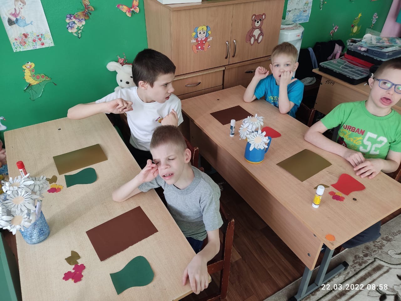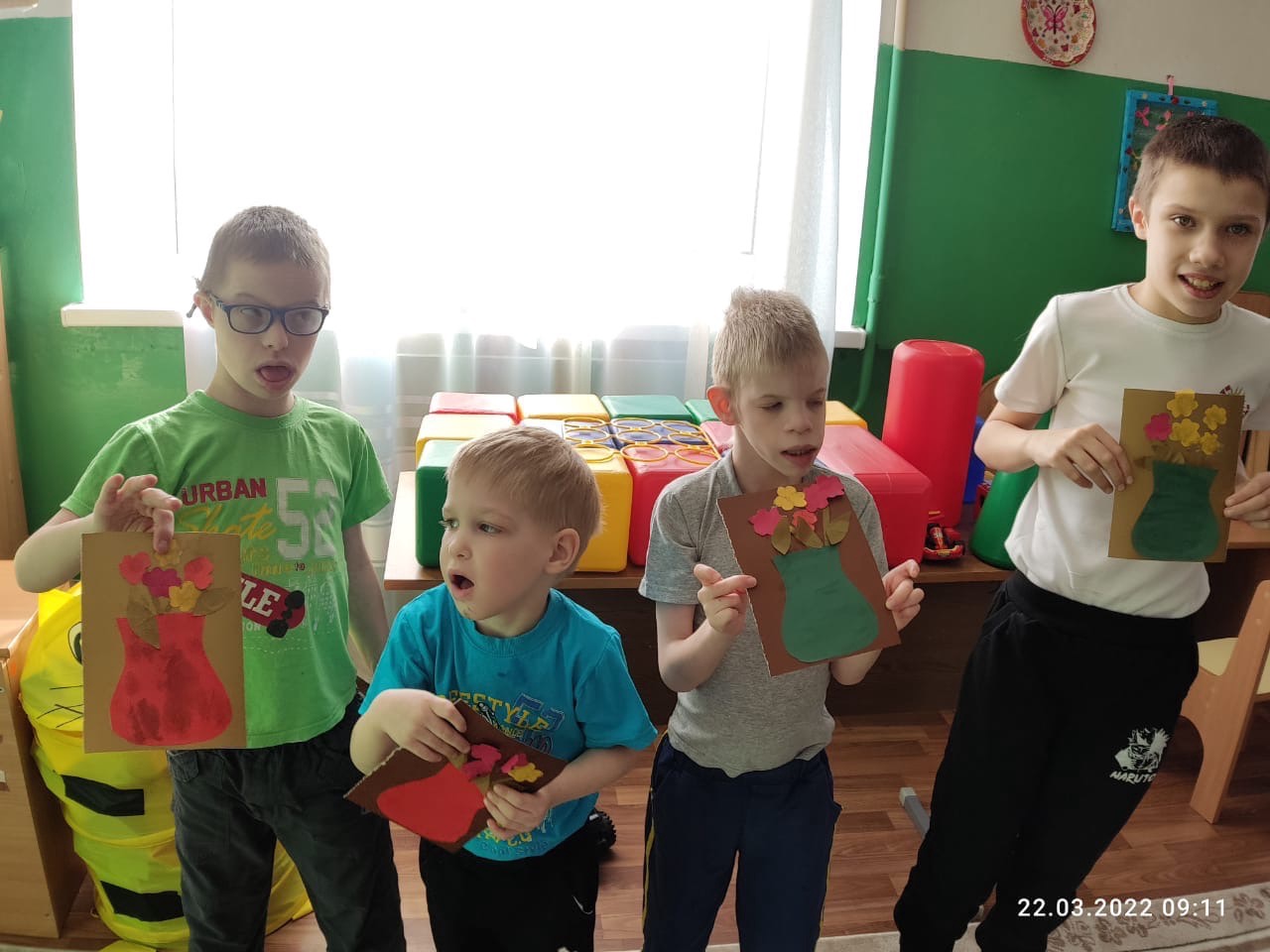 Группа манеж под руководством дифектолога Будяковой В. выполнили аппликацию "Цветы в вазе". Цель: закрепить у детей практические навыки аппликации, формировать пространственные представления - учить правильно располагать изображения на листе бумаги и наклеивать их.