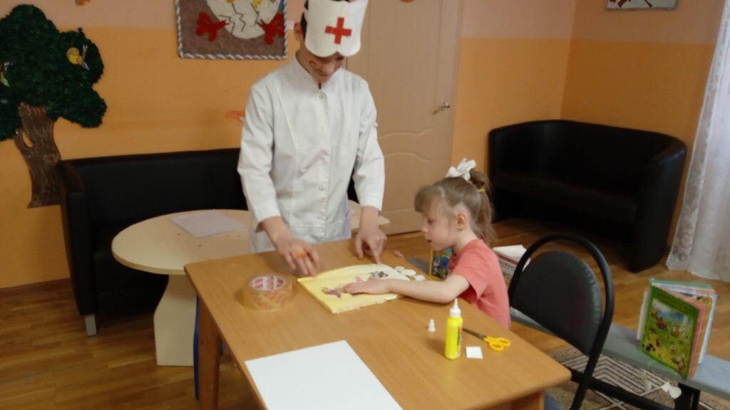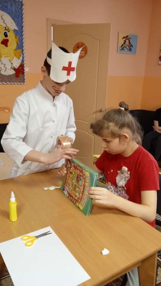 В группе мальчиков и девочек воспитатели провели сюжетно-ролевую игру "Будь здорова книжка". Это игра и труд и новые знания которые сегодня превратились в интересное и полезное дело. В игре воспитанники с удовольствием распределили роли, доктор Айболит, медсестра и ассистенты. Дети в ходе игры эмоционально восприняли диагноз каждой книги и постарались как можно скорее их вылечить.