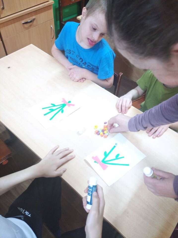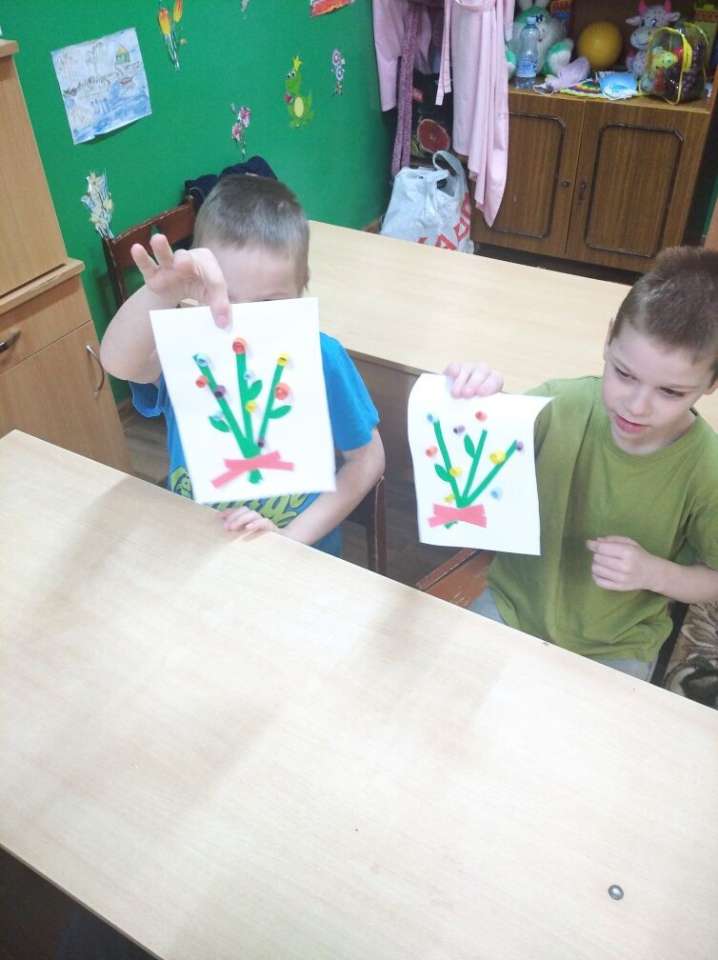 Воспитанники отделения Милосердия радуются её приходу. Они смастерили прекрасные букеты под руководством воспитателя Хощенко Н.А.