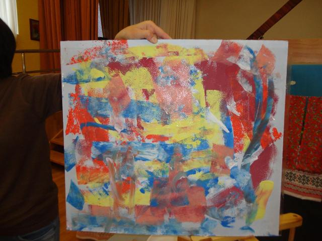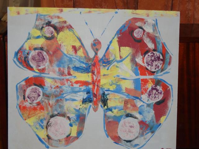 Каждый принял участие в мастер-классе! Рисовали бабочку при помощи кистей, валиков и мастихина!