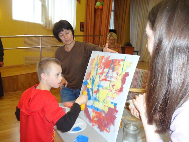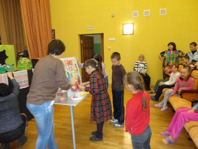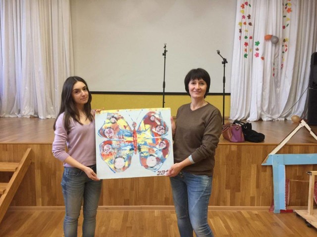 Сегодня представители БФ «Луч Света» приехали к нам в Большетроицкий дом - интернат. По этому случаю была подготовлена интересная программа и множество подарков. С первых минут мероприятие вызвало живой отклик и интерес у ребят. Вначале вместе с Ольгой Сацик и Яной Войцеховской, творческий дуэт «GloriArt», воспитанники создали прекрасное коллективное полотно" Бабочка" в технике абстрактной живописи.