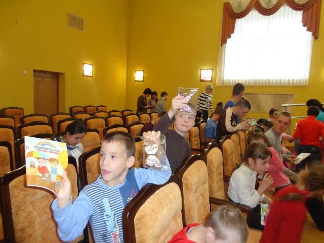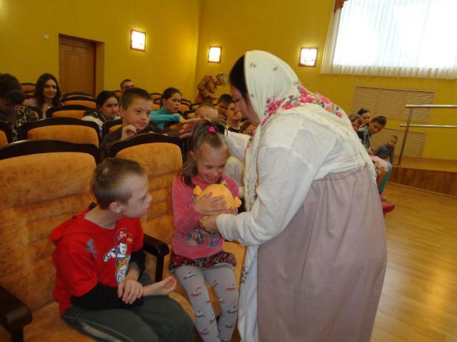 Картина осталась в детском доме-интернате. Затем, Наталья Беспалова, творческое объединение "РЫБА", показала всем нам спектакль « Колобок» в новой интерпретации. Яркие декорации и весёлые куклы не оставили ни кого равнодушными. И взрослые и дети радовались и смеялись от души! Приятной и трогательной неожиданностью стало выступление самих воспитанников перед своими гостями. Дети пели красивые песни, а затем устроили самую настоящую дискотеку. После чего каждый ребенок получил в подарок : журнал «Раскрась – ка Белгород» от социальных предпринимателей семьи Павловских и вкусные пряники от Юлии Антоновой (в виде бабочек).