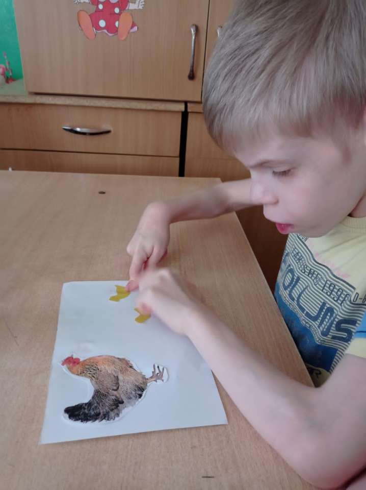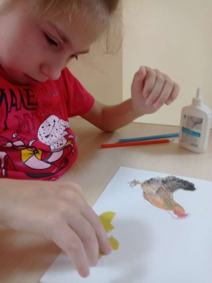 В группе манеж Воспитатель Ватулина С.В. провела занятие на тему "Курочка и цыплята". Цель: формирование знаний о птице - курица и цыплята из серии занятий "мама и детки"; умения приклеивать картинку на лист бумаги; коррекция мелкой моторики рук, внимания памяти.
