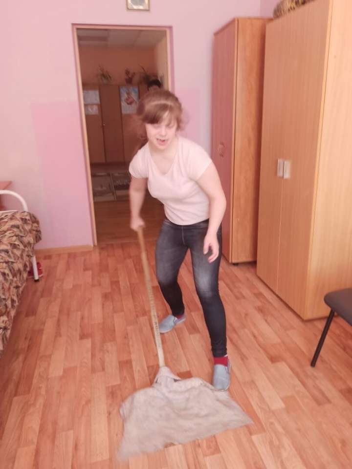 Формирование социально-бытовой компетентности осуществляется в ходе занятий по социально-бытовой ориентировке, в процессе которых воспитанники получают знания о разнообразных сферах жизни и деятельности человека, приобретают практические умения, позволяющие им успешно адаптироваться в быту и социальной среде. Группа девочек под руководством воспитателей Дрокиной И.В., Чернышовой Е.В. и санитарочкой Дубской Н.В. с удовольствием наводят порядок в своём корпусе. После уборки в группе царит чистота и порядок.