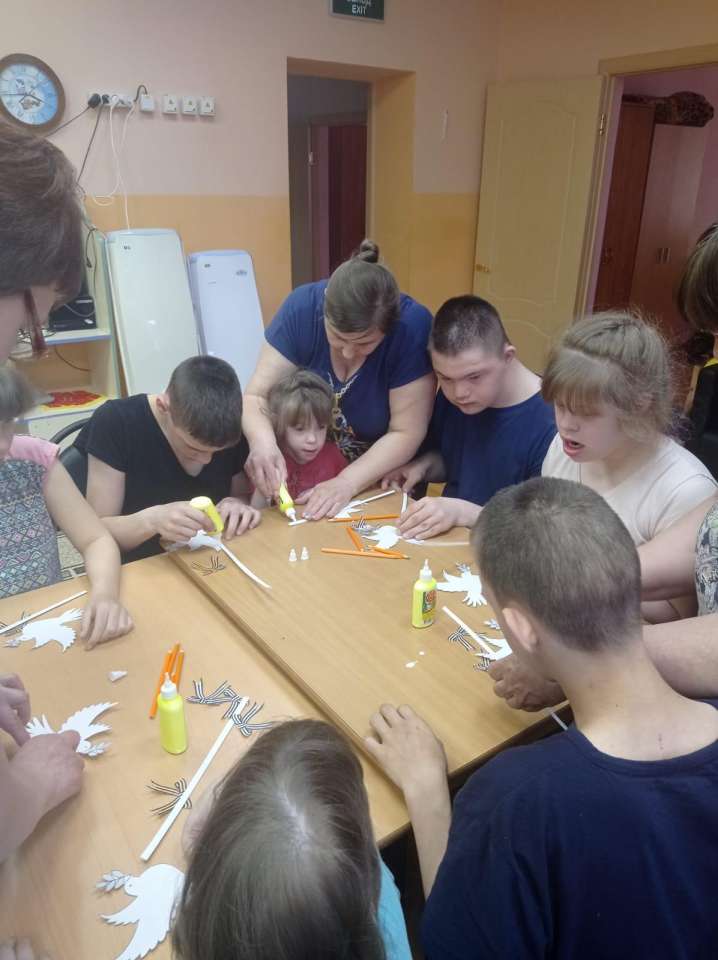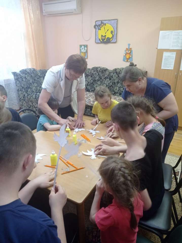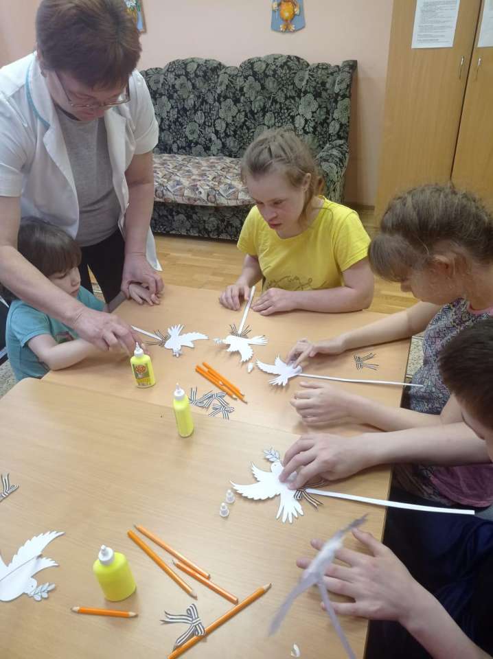 Ребята сделали голубей, раскрасили картинки, Лепили поделки из пластилина.