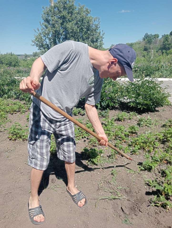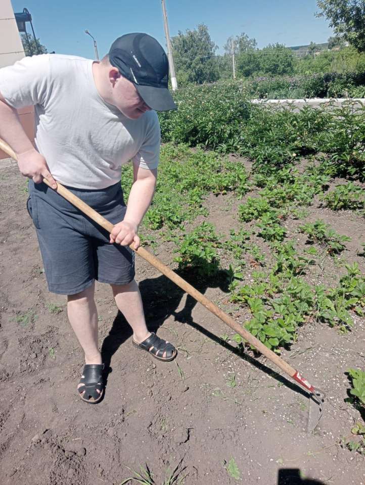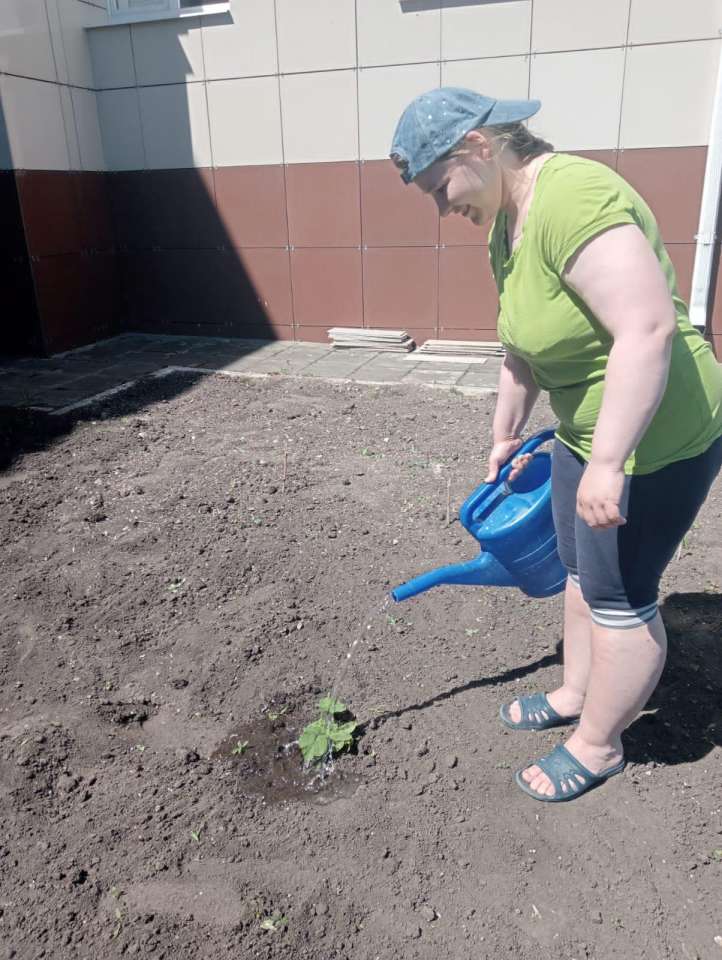 Сегодня группа молодой инвалид на занятие по трудотерапии под руководством инструктора по труду Арзумановой Г.И. осуществляли прополку и поливку посаженной овощной культуры.