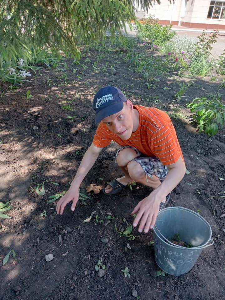 Сегодня получатели социальных услуг отделения Молодой инвалид под руководством инструктора по труду Арзумановой Г.И. занимались прополкой клумб .