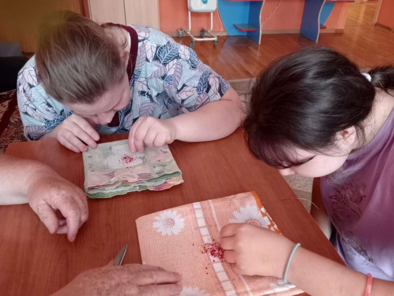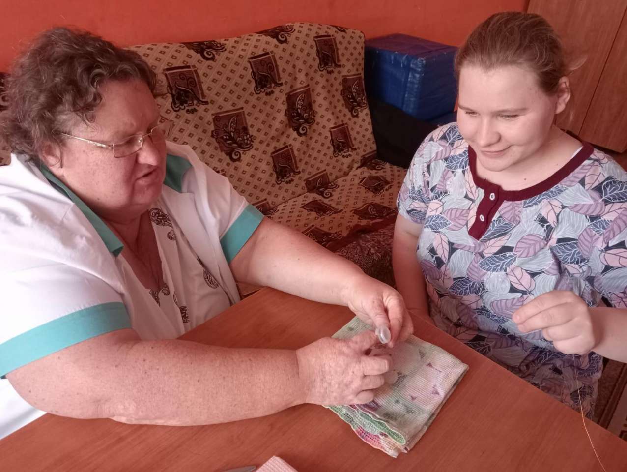 Девочки из группы молодой инвалид готовятся к конкурсу "Верь в себя" . Бисероплетение под руководством Боярченко Л.В.