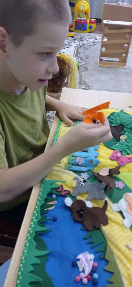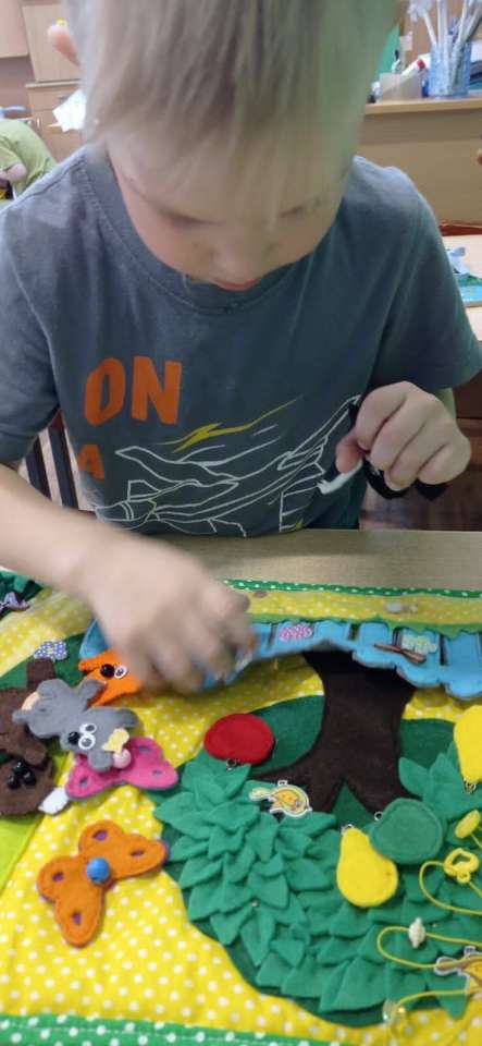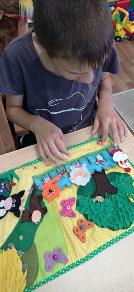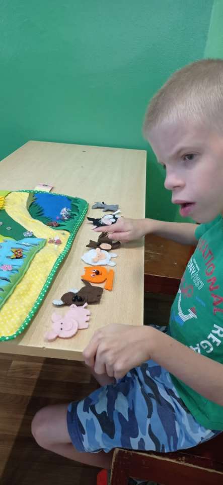 Воспитатель группы манеж Наумова С.В. продолжает систематизировать знания детей о домашних животных и их отличительных особенностях с помощью лепбука "Лето".
