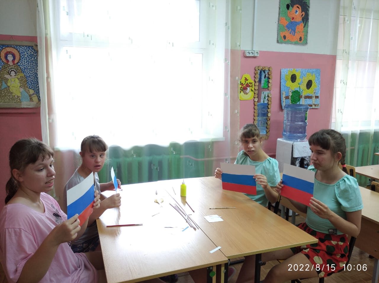 Группа "девочек" с воспитателем Загорцевой Т. приняли активное участие в акции "День Государственного флага Российской Федерации". Они с большим удовольствием изготовили "Флаг России".
