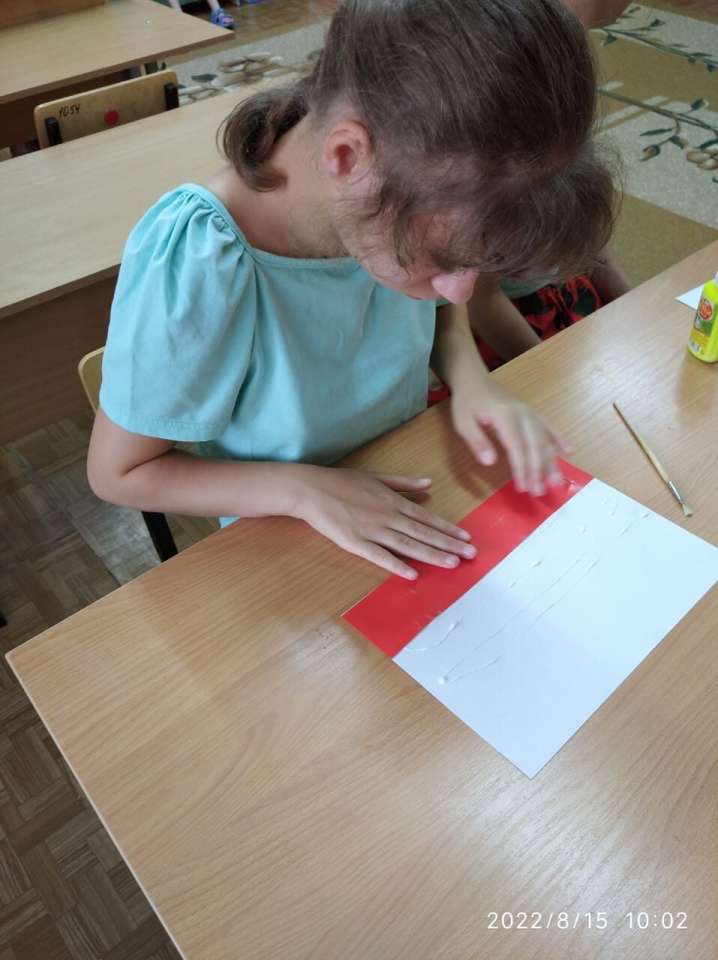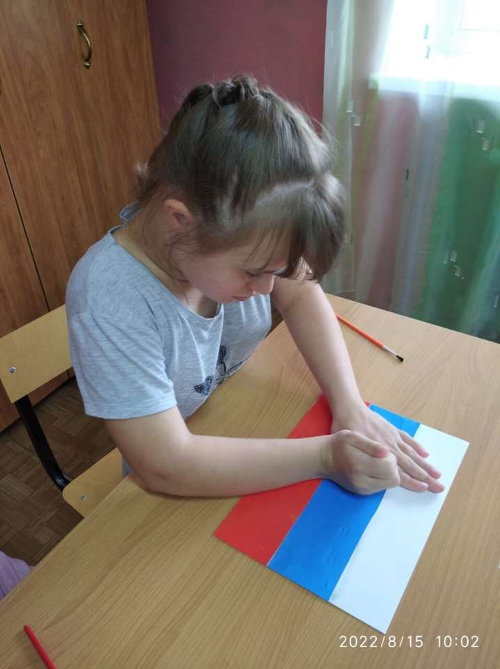 Цель: закрепление зрительных представлений о Российском флаге; развивать творческие способности детей через аппликативную деятельность,мелкую моторику рук; воспитание патриотизма, уважительного отношения к флагу нашей страны.