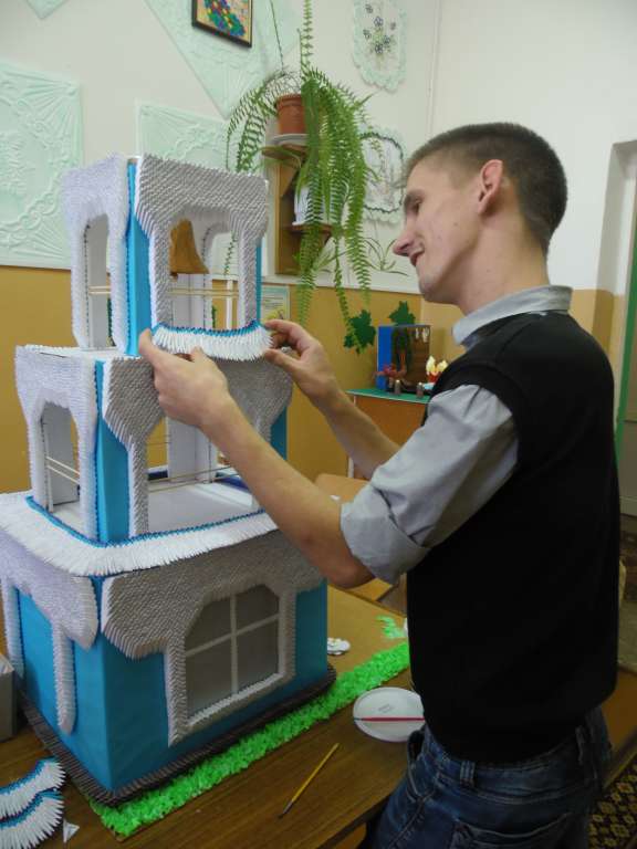 Основная цель занятий – развитие творческих способностей воспитанников, улучшение активности при выполнении поставленного задания с учётом индивидуальных особенностей, коррекция мелкой моторики, развитие креативности, умение планировать результат своей работы. Например, в технике модульного оригами была создана модель храма.