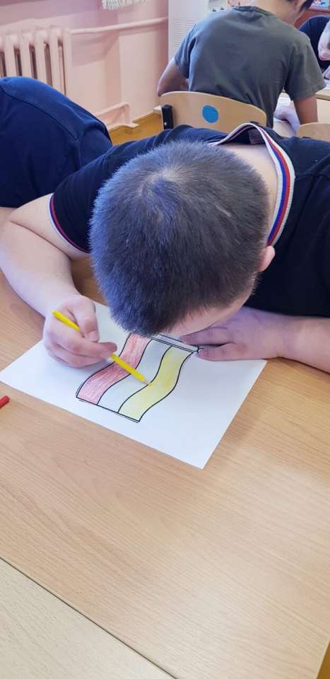 Под руководством педагога дополнительного образования, Андроник Е. В. воспитанники раскрашивали тематические рисунки и оформили выставку к акции "День Государственного флага РФ".