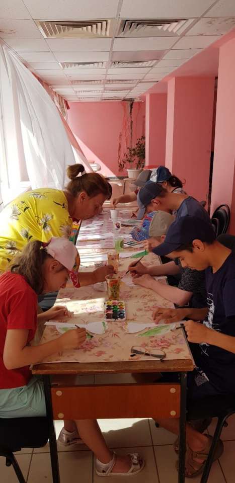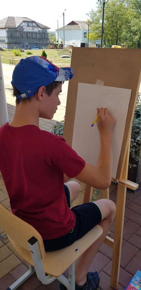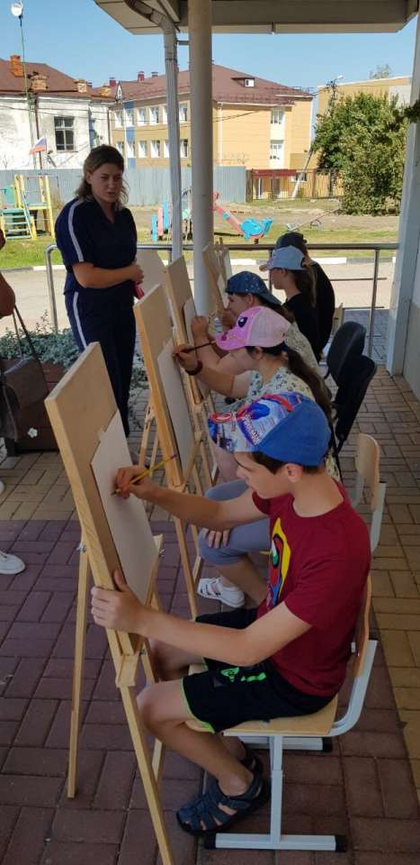 С Людмилой Ивановной ребята, с помощью красок превратили чистый белый лист в яркий, красочный цветочек. Лето- идеальное время для рисования на улице.