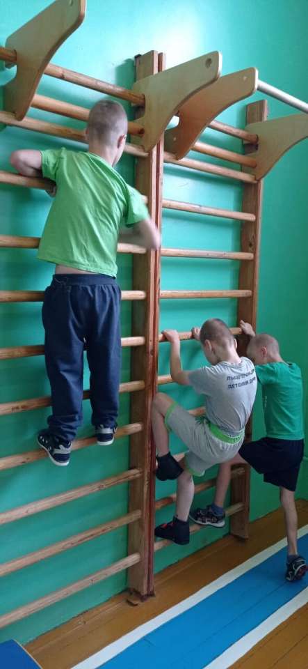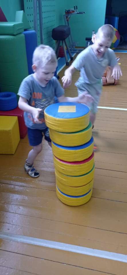 Двигательная активность способствует физическому развитию детей, создаёт положительный эмоциональный настрой. Дети играли с тяжёлым мячом, сооружали постройки из мягких модулей, играли в сухом бассейне, учились лазить по гимнастической стенке.