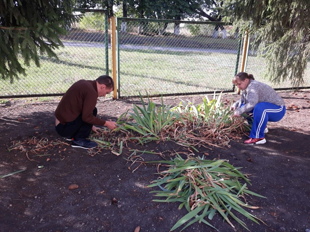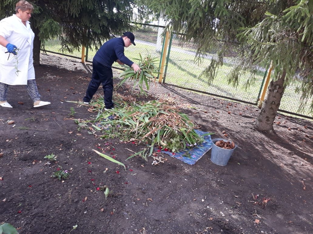Сегодня группа Молодой инвалид на занятие по трудотерапии помогали убирать на территории двора.
