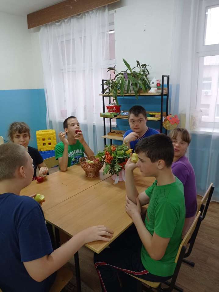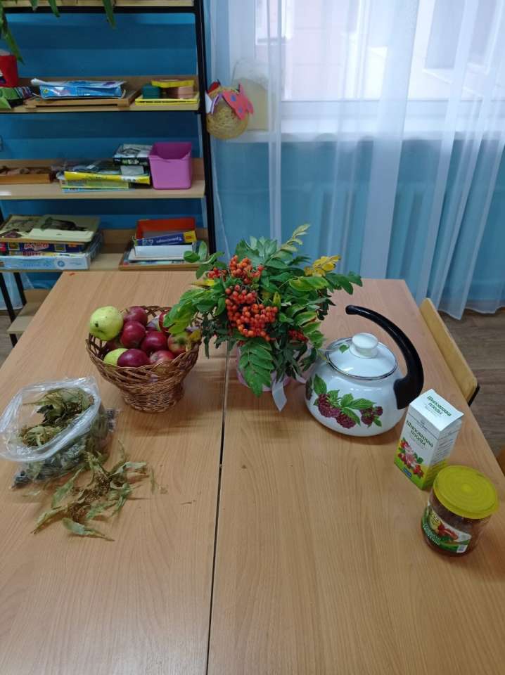 Чай заварили из заранее заготовленных цветов липы, плодов шиповника, дети с удовольствием поели яблочного повидла и конечно же ароматного белого хлеба.
