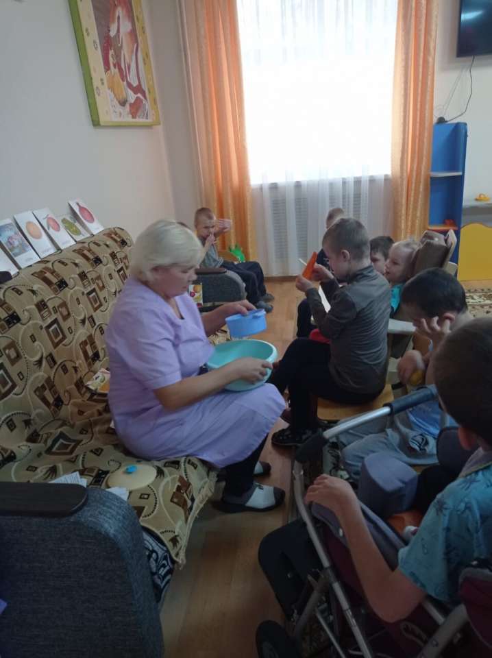 Сегодня в отделении Милосердия в группе манеж прошли игры, развлечения с элементами викторины "Дары осени". Занятие проходило в стихотворной форме, в тёплой дружеской обстановке. Дети совместно с воспитателем Ватулиной С. обобщали знания.