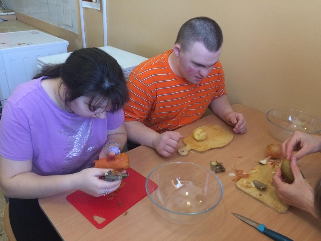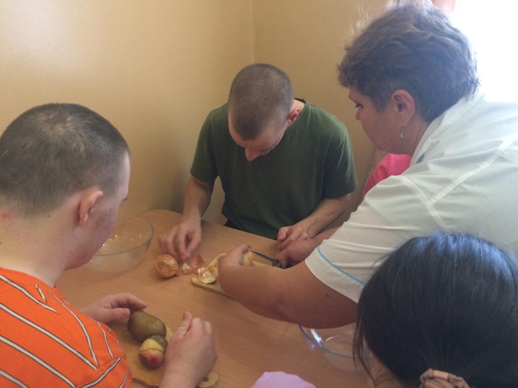 В отделении Молодой инвалид прошло мероприятие "Дары осени". Инструктор по труду Дацковская Е. вместе с получателями социальных услуг приготовили овощной салат винегрет и провели дидактическую игру "из чего салат".