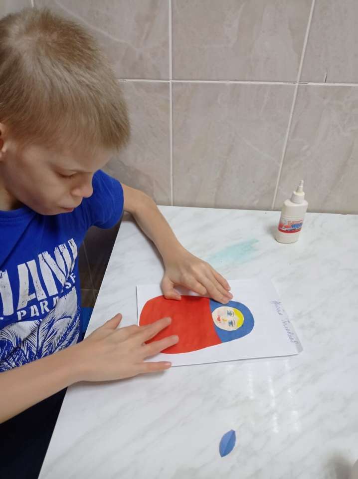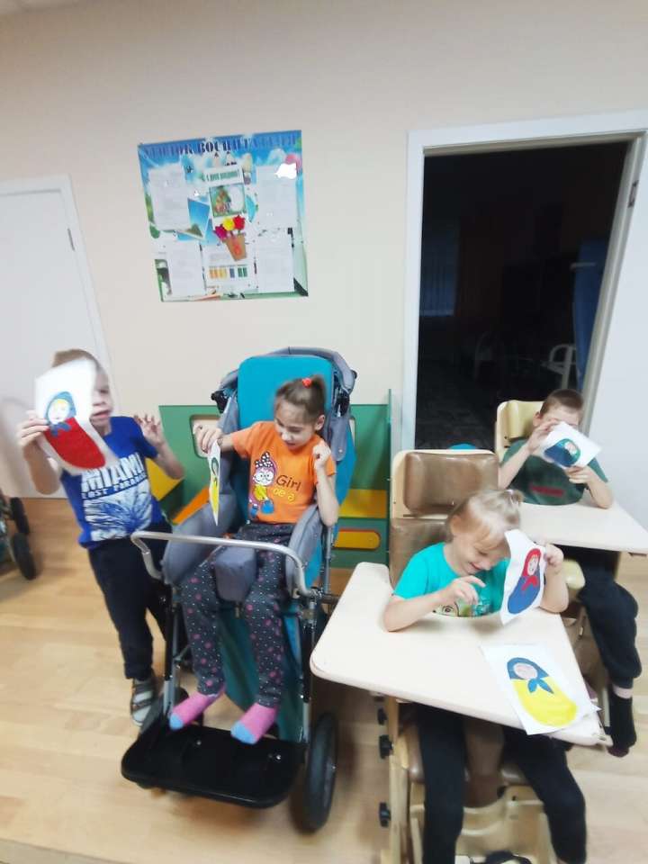 Воспитатели Ватутина С. В. и Тихонова О. Н. в группе манеж отделения Милосердия провели беседу и сделали аппликацию "Мы матрешечки".
