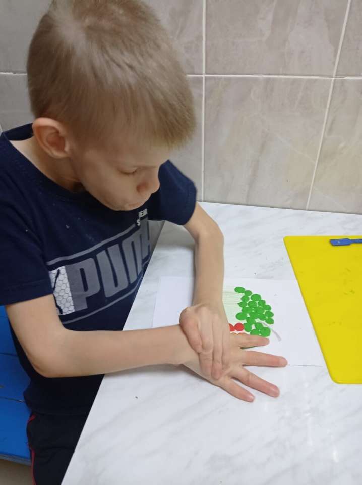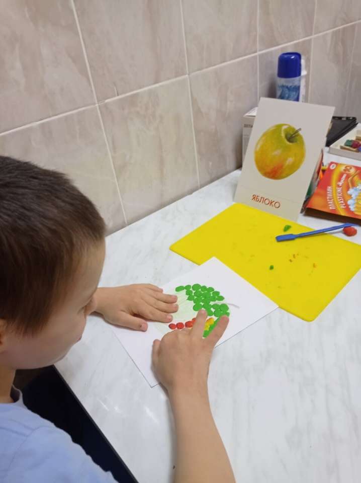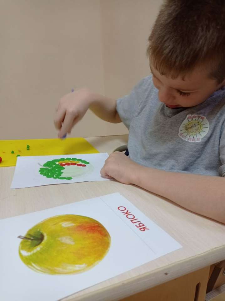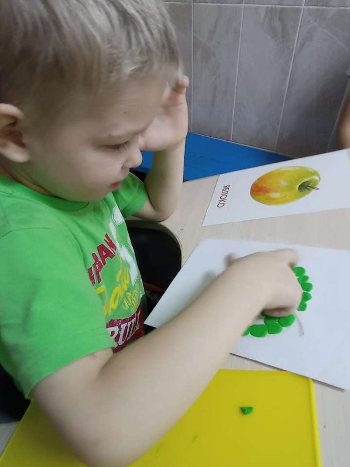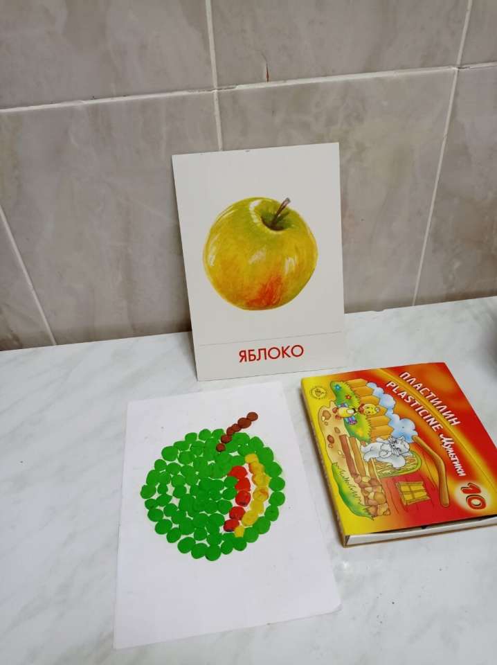 Воспитатель Ватулина С. В. в группе манеж провела занятие пластилинография " Яблоко наливное".