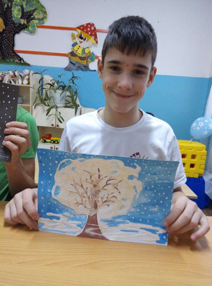 В ожидании Нового года нарисовали деревья, запорошенные снегом
