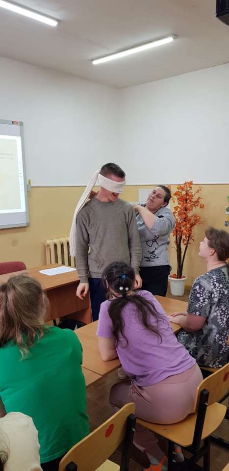 В отделении Молодой инвалид педагог-психолог Бондарева Т.Н. провела беседу ко Дню инвалидов "Урок доброты". Воспитанники познакомились с некоторыми проблемами инвалидов, обыграли ограничения возможностей. Сделали вывод о том, что инвалидом быть совсем непросто и эти люди требуют он нас понимания, уважения, помощи, доброты и человеческого отношения. В конце занятия воспитанники изготовили поздравительную открытку для проживающих Дома инвалидов в г.Шебекино. Открытка с сердечком, как символ доброты, сердечности, внимания и отзывчивости к пожилым людям.