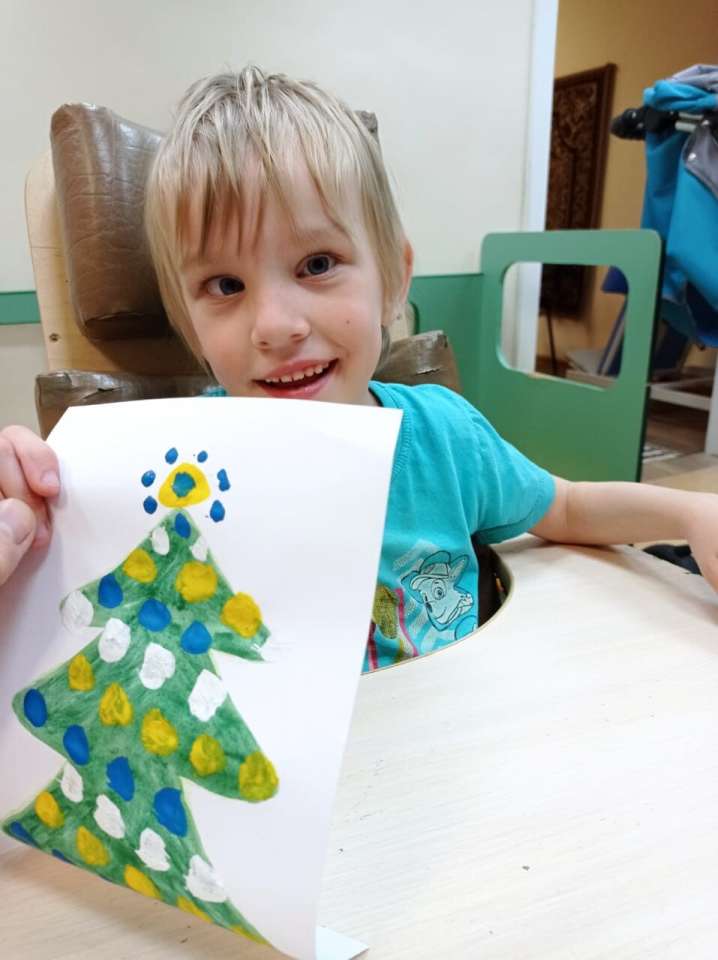 Воспитатель Ватулина С.В. в своей группе манеж провела занятие "Мы нарядим ёлочку" рисование красками.