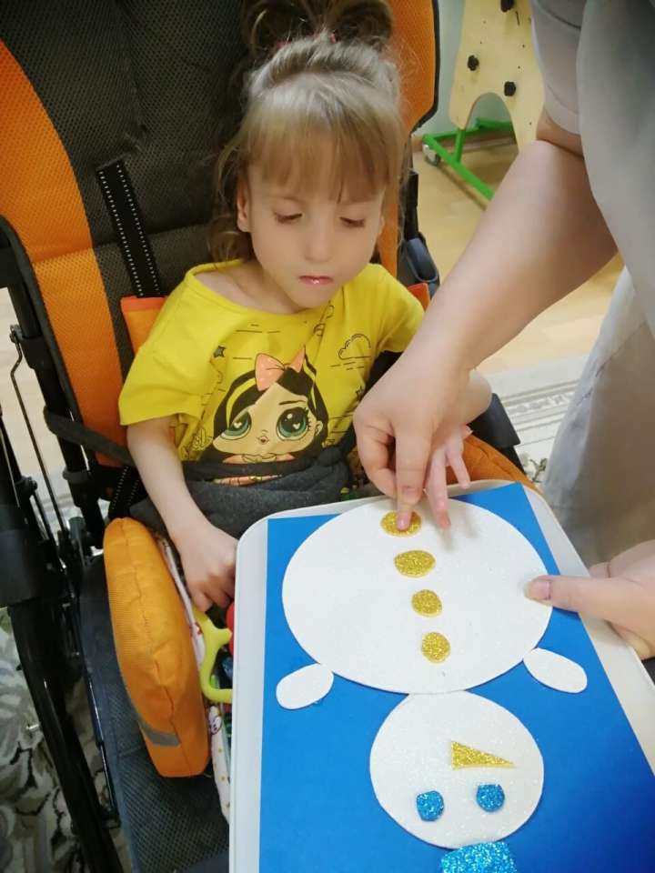 В отделении Милосердия группа немобильные воспитатель Столярова Е. Ю. провела коллективное занятие "Поделка Снеговик".