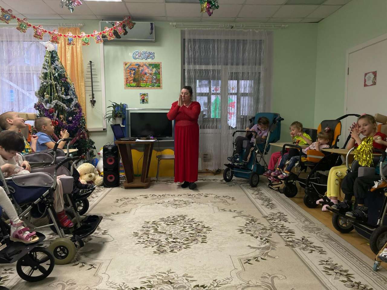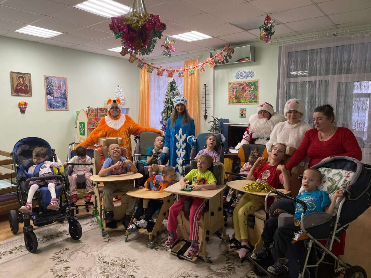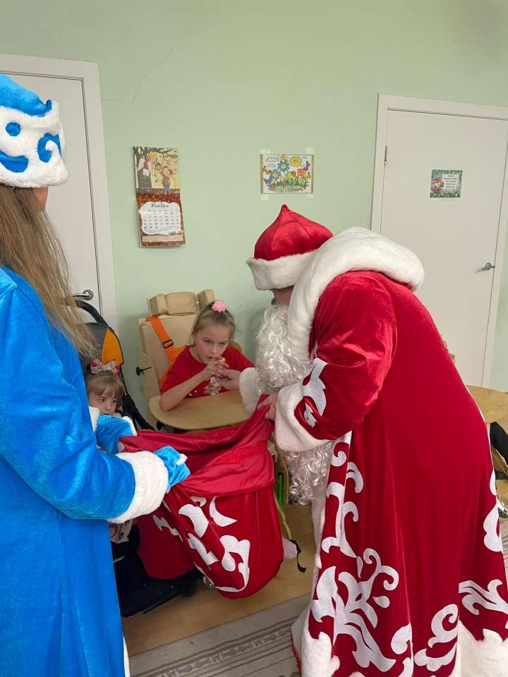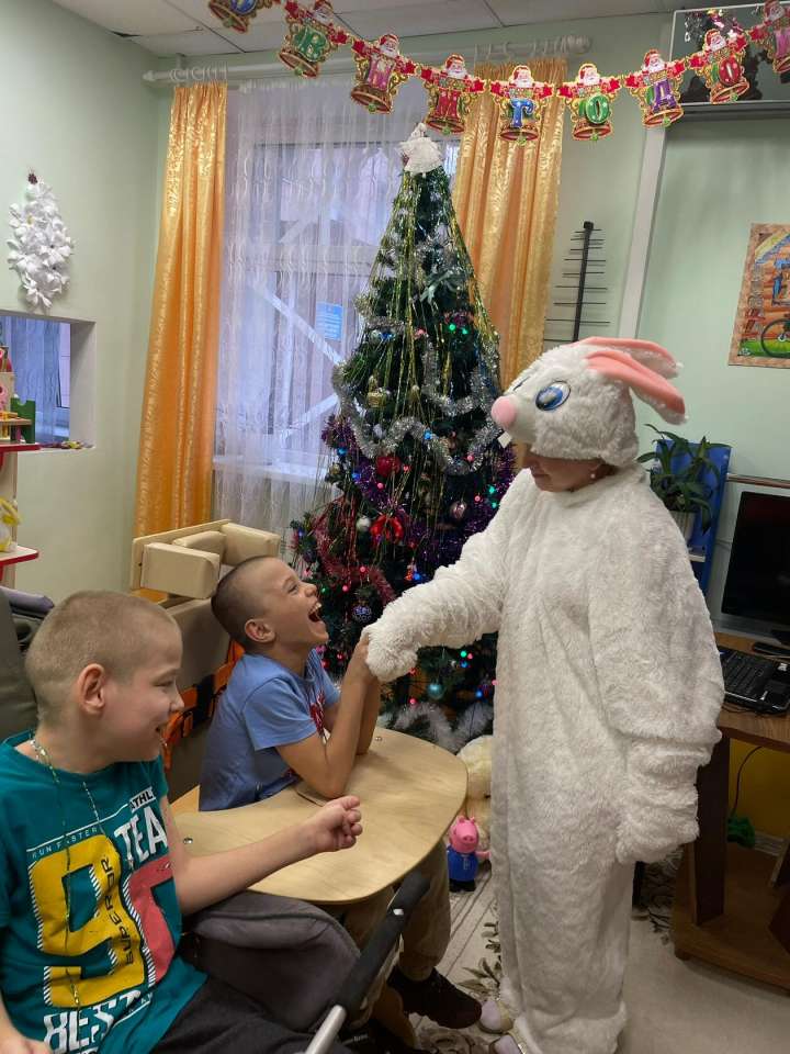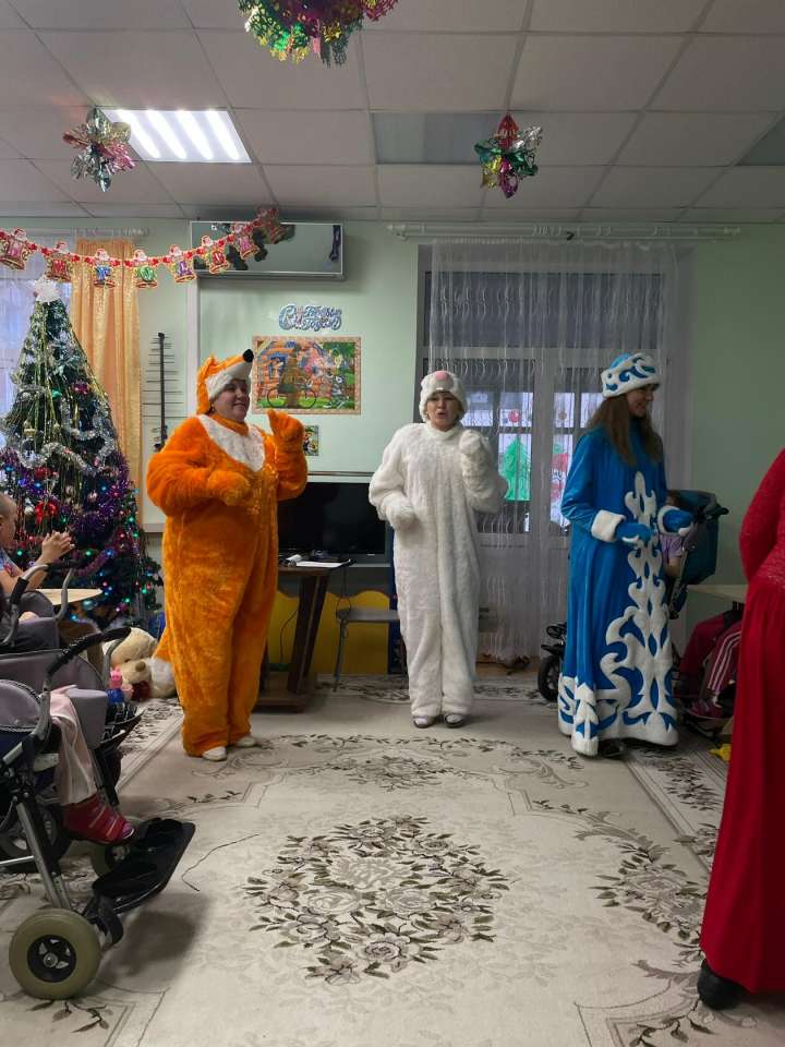 Новый год приходит к каждому человеку на нашей планете. Вот и в отделении Милосердия, в группе немобильные он постучался в дверь. К ребятам пришли сказочные герои, Дед Мороз, Снегурочка. Они радостно встречали гостей, пели песенки, танцевали, рассказывали стихи и Дед Мороз всем подарил сладкие подарки.