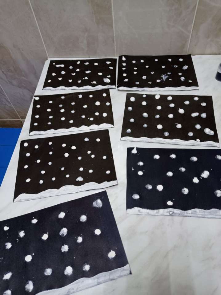 Воспитатель Ватулина С. В. провела занятие, обобщение и беседу в группе манеж. Оно проходило в два этапа. Вечером на кануне рисовали ночь, а следующим утром - утро.