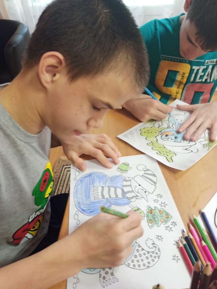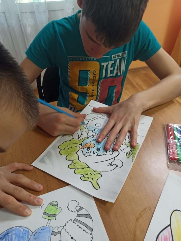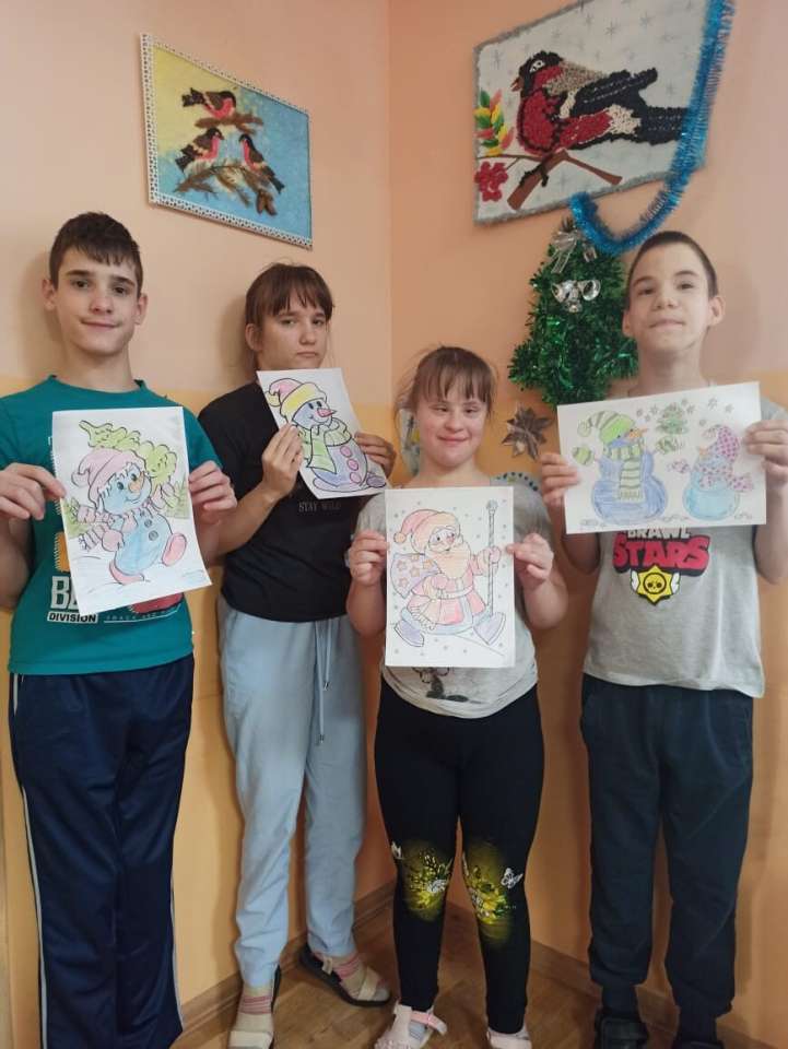 Сегодня в отделении психолого-педагогической реабилитации прошло занятие "Зимние зарисовки". Ребята вспомнили названия времени года, прошедших праздников, зимних символов: Снеговик, Дед Мороз, Снегурочка. Разукрасили картинки.