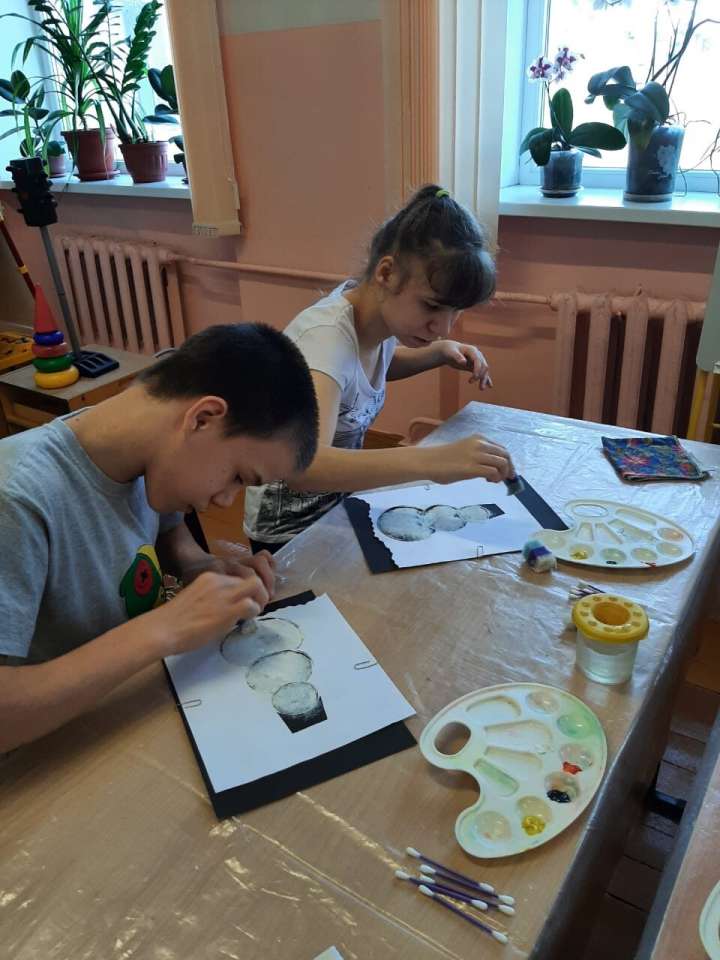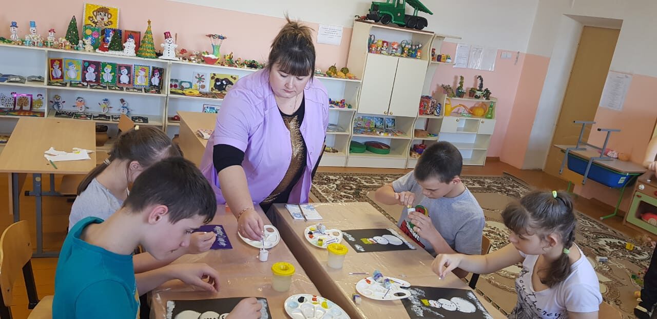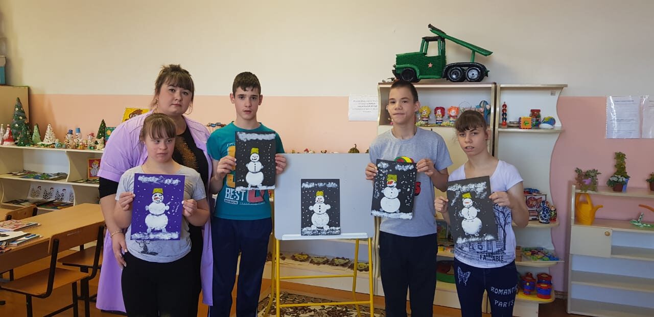 Сегодня воспитанники психолого-педагогической реабилитации с педагогом дополнительного образования Андроник Е.В. показали своё умение творить. С помощью трафарета "слепили" снеговика, нарисовали тычком пуговицы и глаза. А пальчики помогли им изобразить снег. Творить можно чем угодно! Главное дать волю воображению.