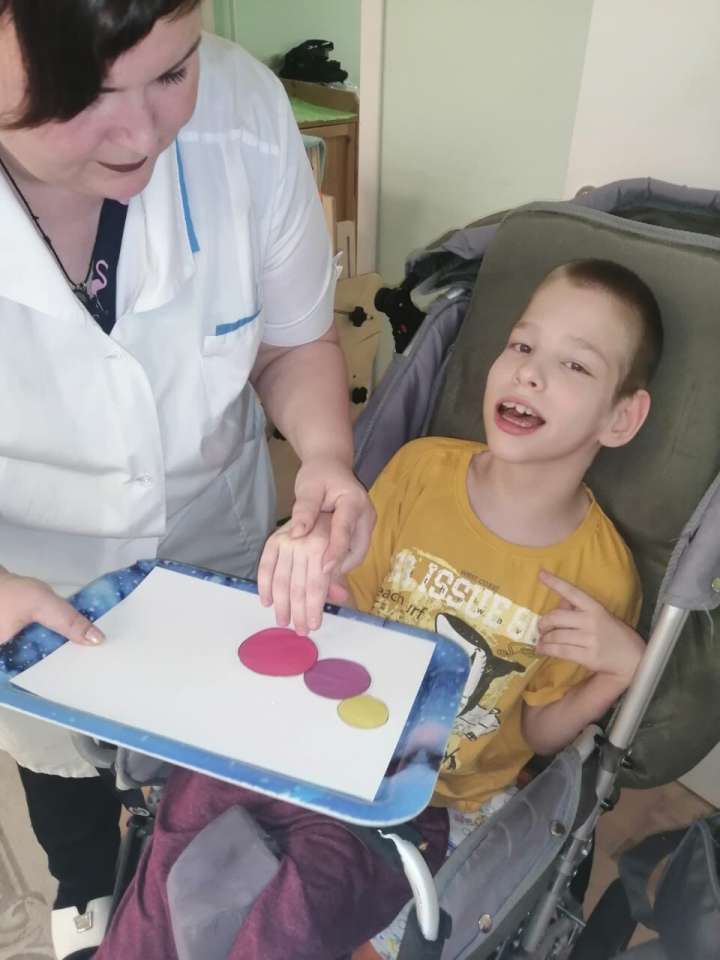 В отделении Немобильные, дети знакомились с различными насекомыми, учились им подражать, педагог - логопед Прокоповой А. Ф. провела пальчиковые игры, затем с воспитателем Столяровой Е. Ю. выполнили коллективную аппликацию "Весёлая гусеница".